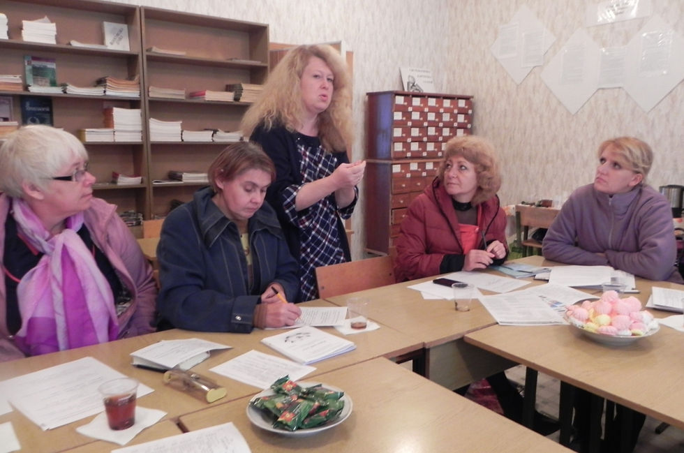 Завідувач інформаційно-бібліотечного відділу Донецького облІППО Скібіна О.А. привітала учасників Круглого столу, оголосила мету та завдання заходу, акцентувала увагу на тому, що робота шкільної бібліотеки в умовах сучасної української школи набуває нового змісту та передбачає якісно високий рівень професійної компетентності шкільного бібліотекаря.